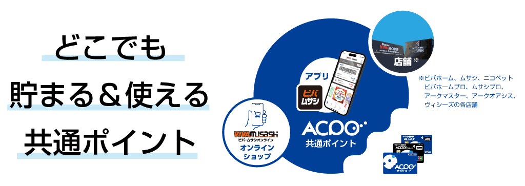 ACPO導入と同時に、オンラインショップも「ビバホーム公式オンラインショップ」と「アークランズオンライン」を統合した「ビバ・ムサシオンライン」へリニューアルいたします。