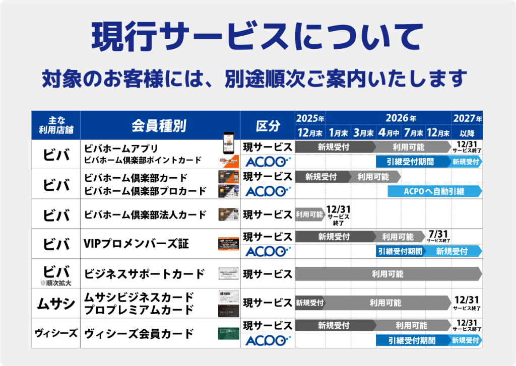 現行サービスご利用のお客様は、順次ACPOに引継ぎ予定です。