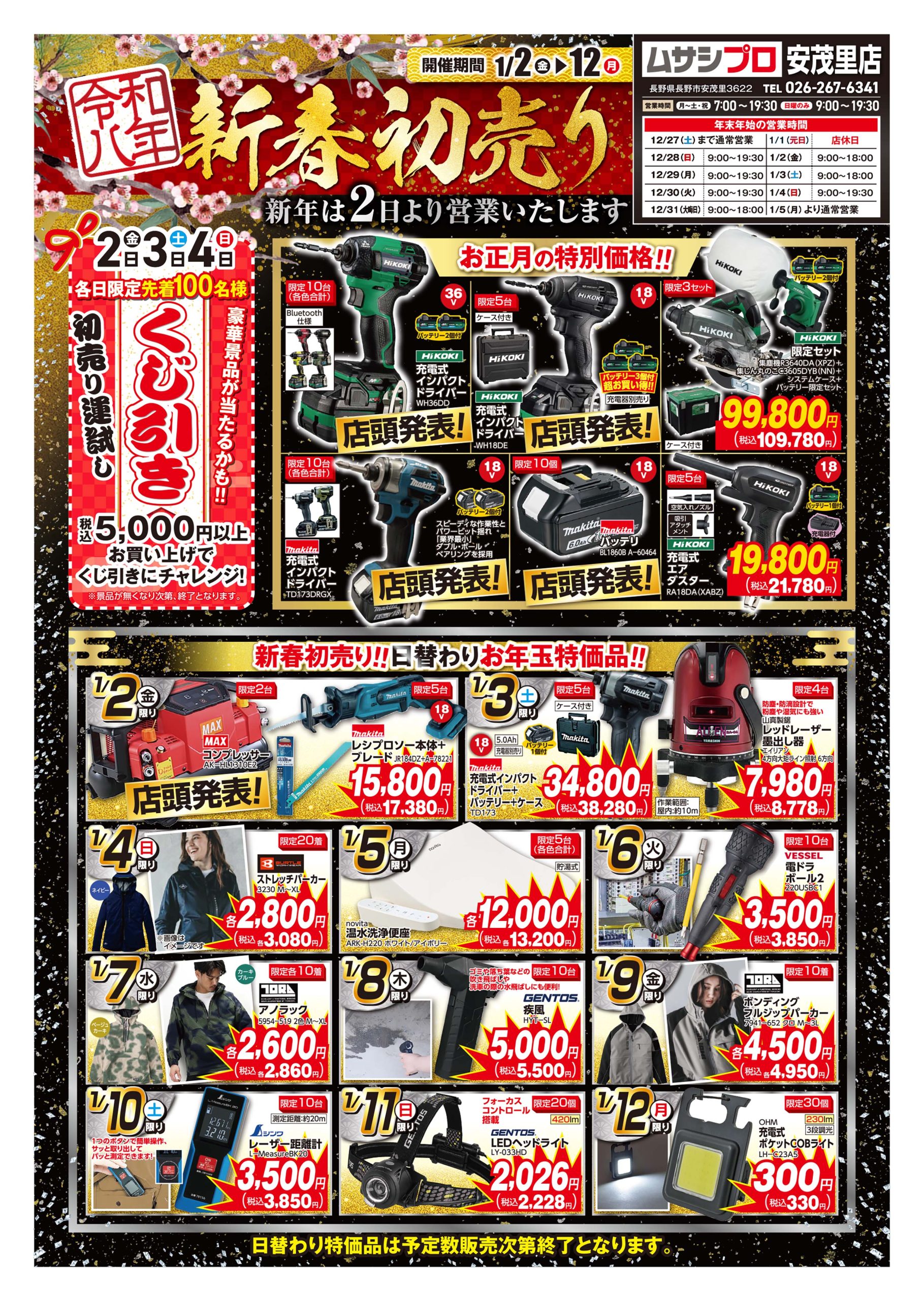 【ムサシプロ安茂里店】新春初売りは1/2より開催!