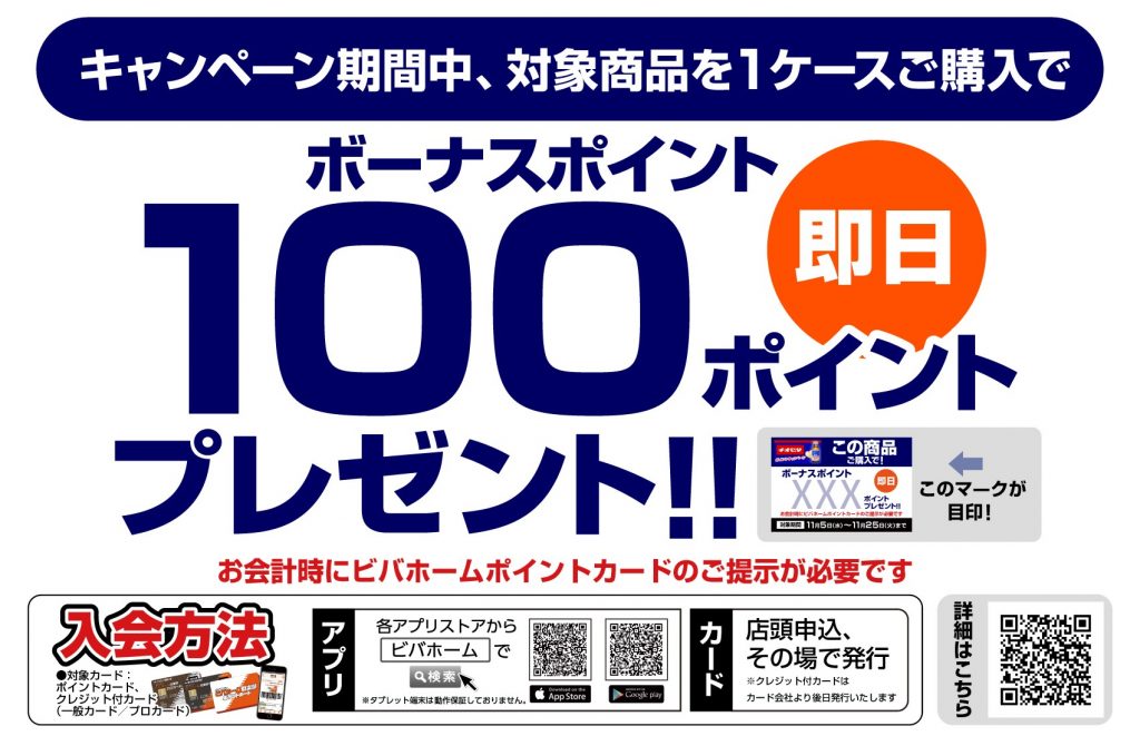 ビバホーム倶楽部カードのボーナスポイント100ポイントプレゼント!