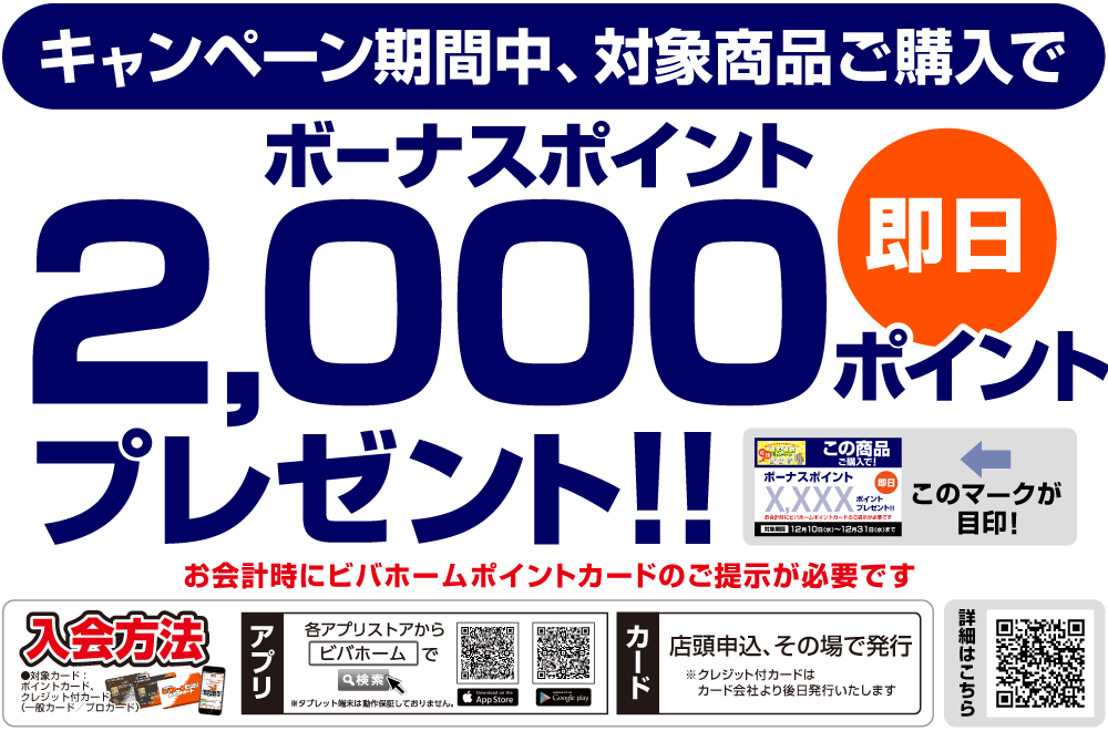 キャンペーン期間中、対象の商品をお買い上げでボーナスポイント2,000ポイントプレゼント!🎁