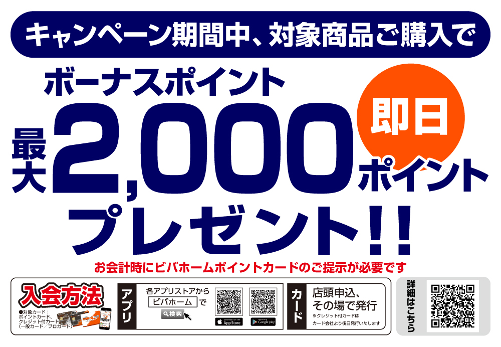 ビバホーム倶楽部カードのボーナスポイント最大2,000ポイントプレゼント!