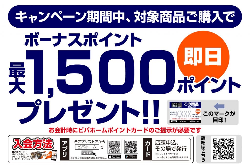 ビバホーム倶楽部カードのボーナスポイント500~1,500ポイントプレゼント!