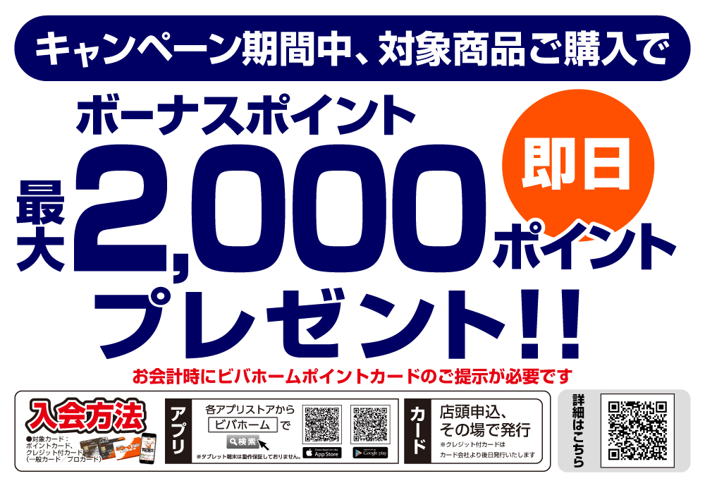 ビバホーム倶楽部カードのボーナスポイント最大2,000ポイントプレゼント!