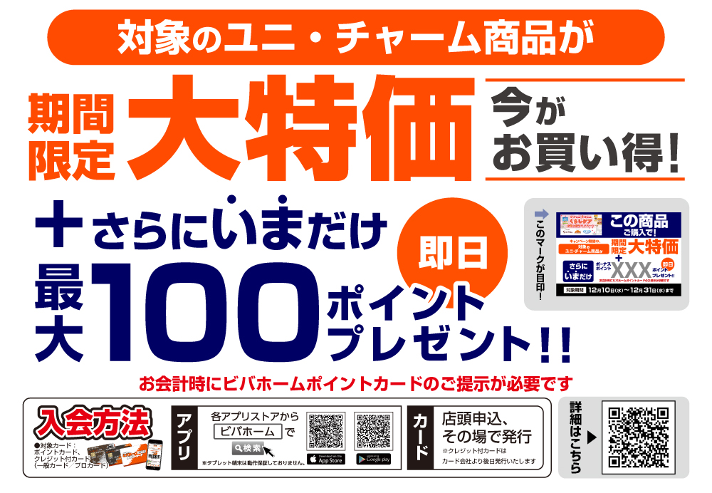 アプリ入会・お持ちのカード登録でビバポイント200ポイントプレゼント中!!