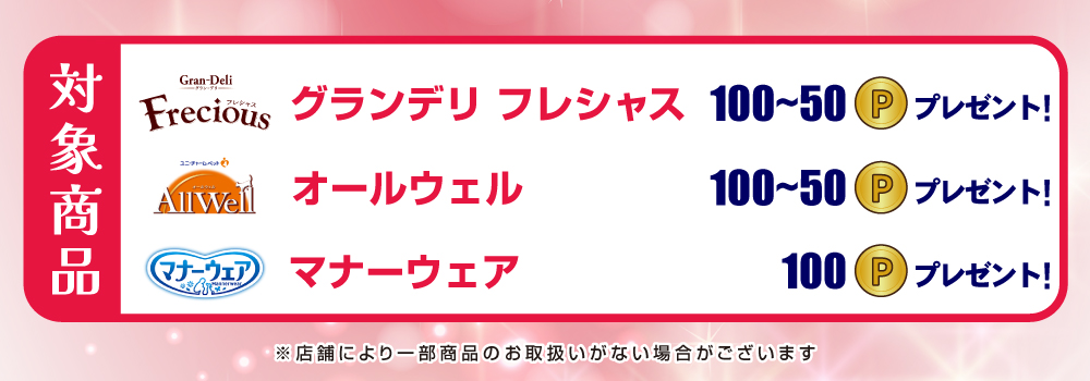 グランデリ フレシャス、オールウェル、マナーウェアなどが対象となります!