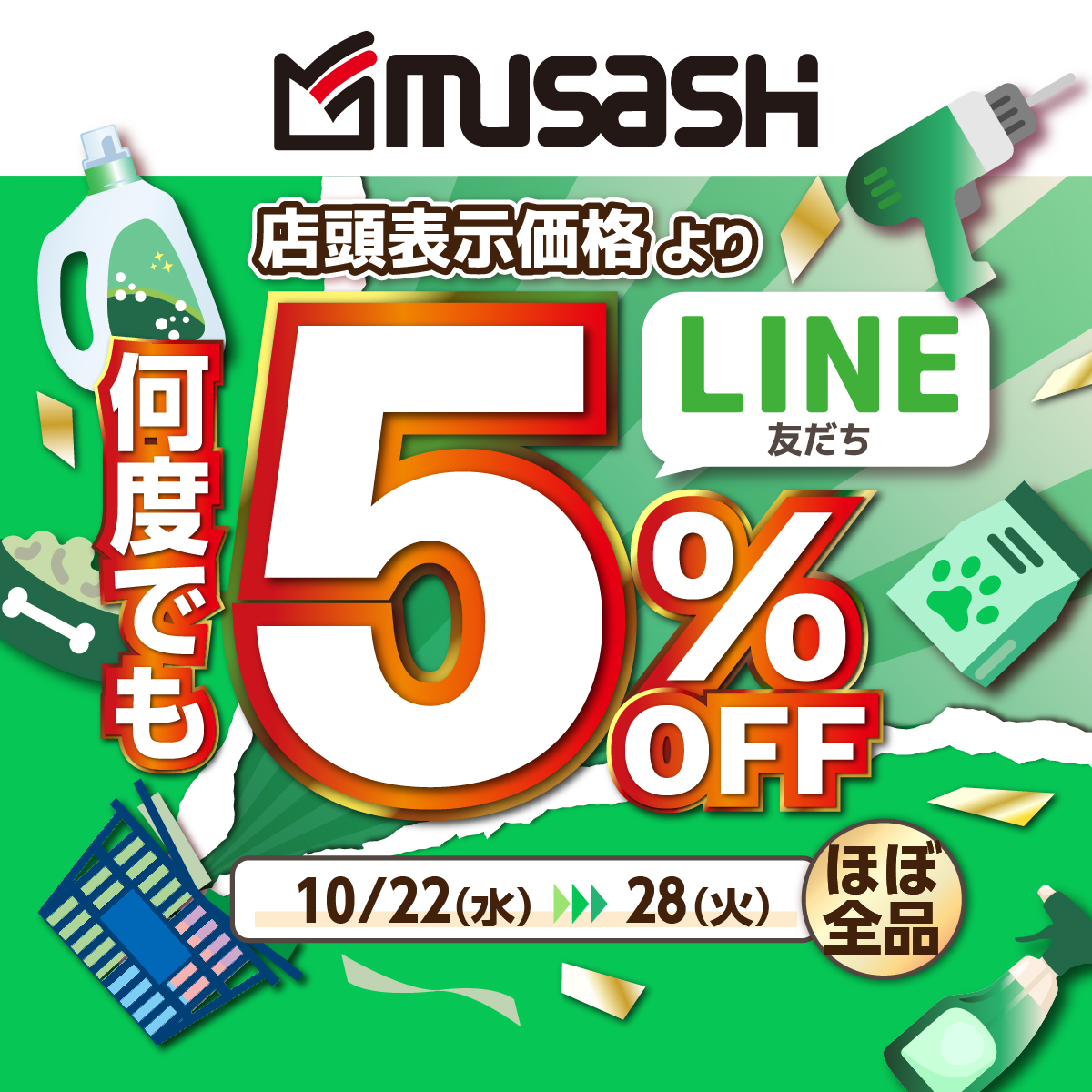 【LINE会員様限定】クーポンご提示で何度でも5%OFFセール開催!