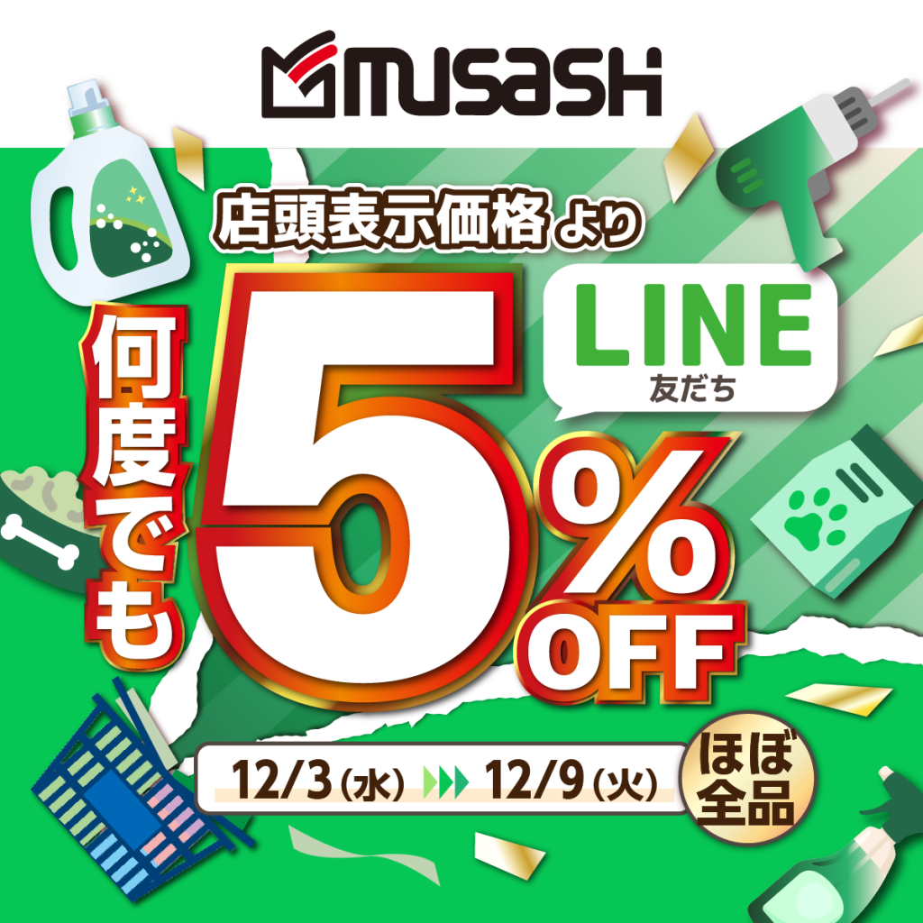 【LINE会員様限定】クーポンご提示で何度でも5%OFFセール開催!