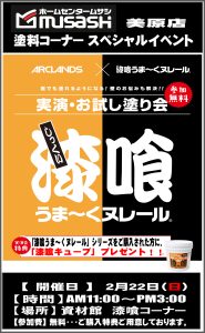 2月22日(日)11時より、「漆喰うま~くヌレール実演・お試し塗り会」を開催いたします