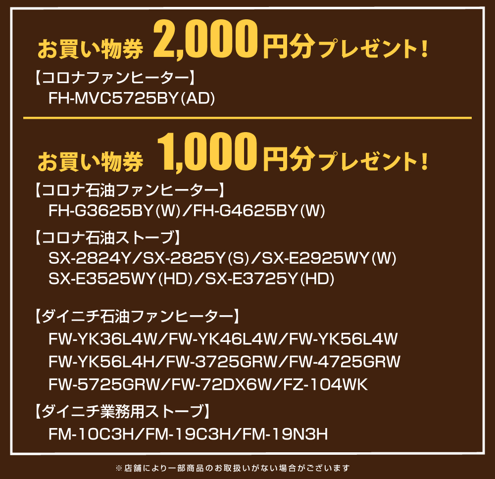 【お買い物券】コロナ・ダイニチ あったか暖房キャンペーン