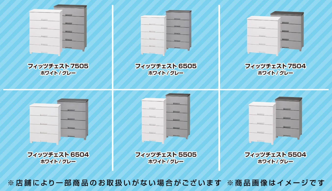 フィットチェスト5504、5505、6504、6505,7504,7505(ホワイト/グレー)が対象となります。