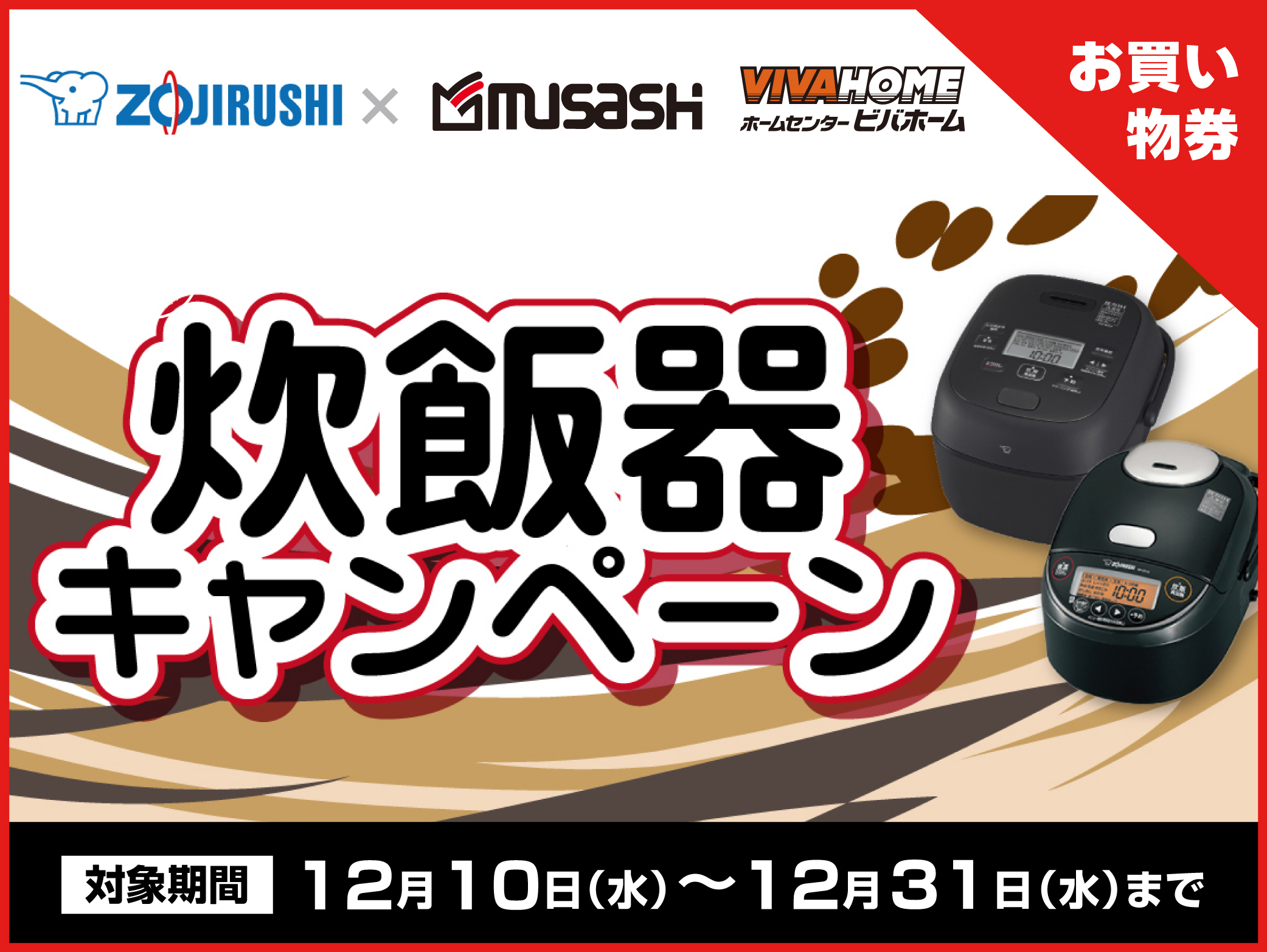【圧力IH炊飯ジャー】NW-BA10-BA、NW-YR10-BZ、NP-ZX10-BA、NW-YR18-BZ、NP-ZX18-BA、【IH炊飯ジャー】NW-VR10-BA、NW-VC10-TA、NW-VR18-BA、NW-VC18-TA、【マイコン炊飯ジャー】NL-DB10-WA、NL-DB18-WA、【少容量IH炊飯ジャー】NP-GS05-XT、NP-GK05-XT【少容量マイコン炊飯ジャー】NL-BR05-BA、NL-BE05-WZなどの一部商品が対象となります。